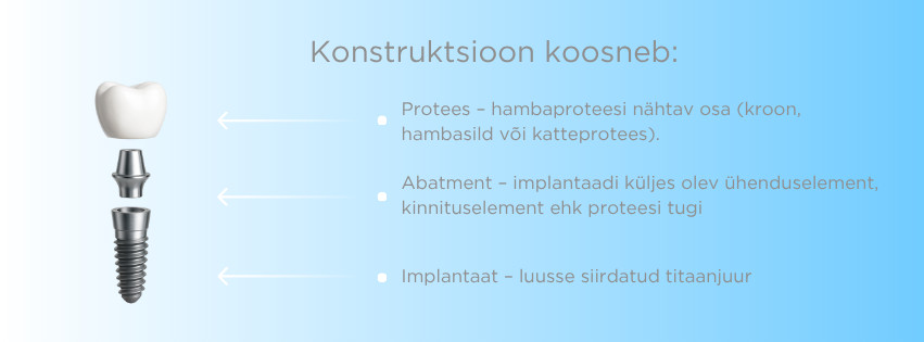 Implantaat on kunstjuur, mis sisestatakse lõualuusse ja kaetakse hambakujulise hambakrooniga.