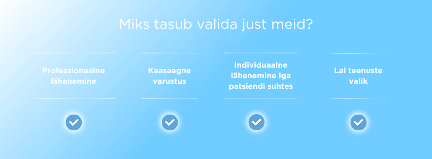 Võimalus kasutada Haigekassa ravi- ja proteesi hüvitised. Hinnad vastavalt Haigekassa hinnakirjale (www.haigekassa.ee)